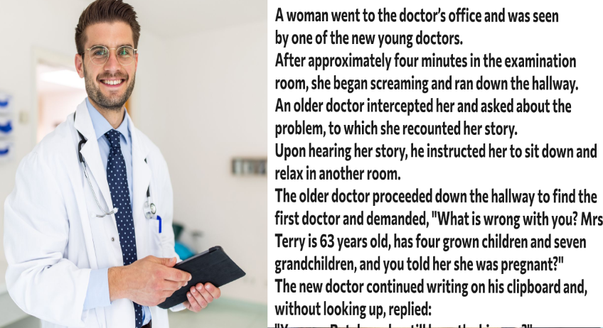 The senior doctor walked down the hallway to locate the young doctor and questioned, “What were you thinking? Mrs. Terry is 63 years old, a mother to four grown children and seven grandchildren, and you informed her that she was pregnant?”