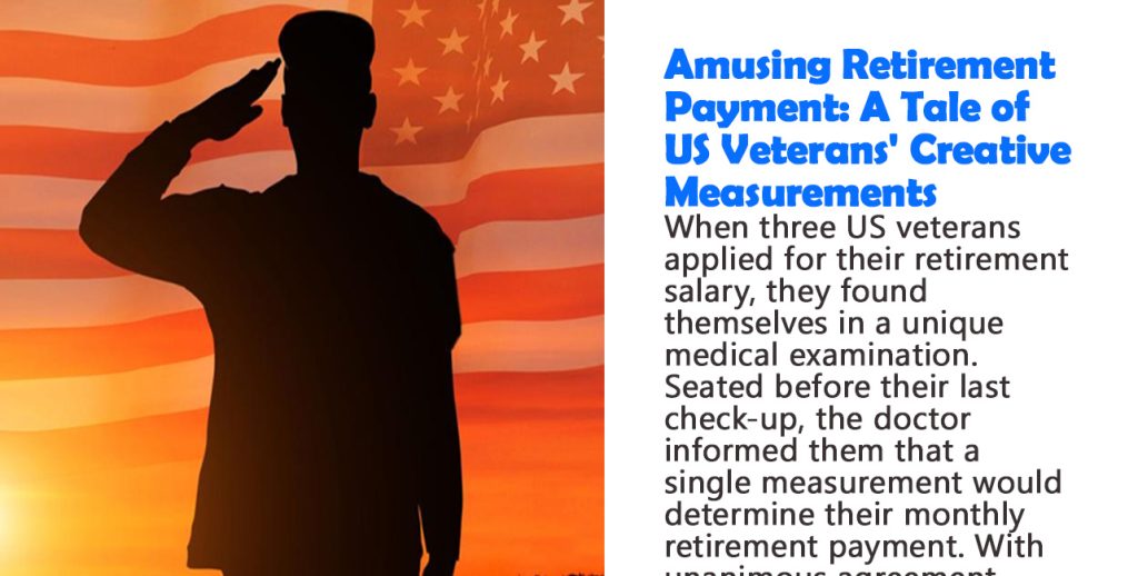 Seated before their last check-up, the doctor informed them that a single measurement would determine their monthly retirement payment. With unanimous agreement, they began.