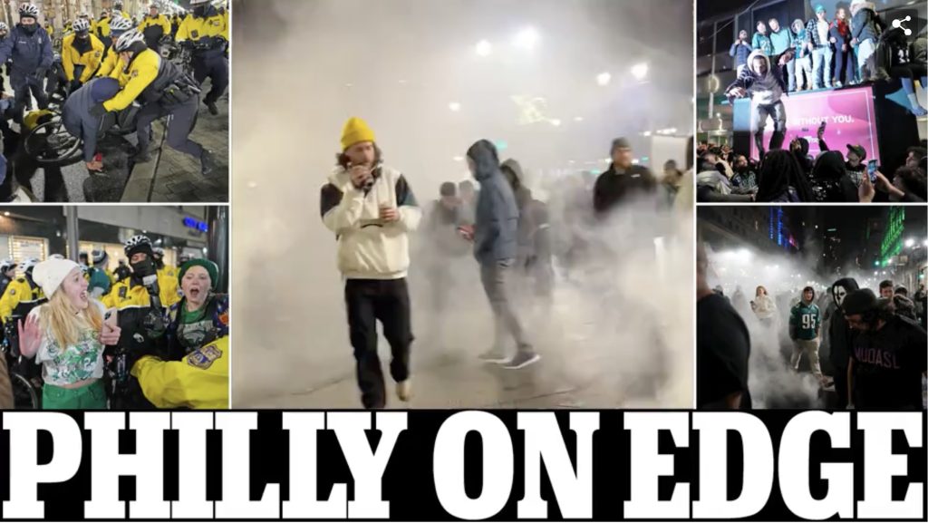Last night, Philadelphia was hit by chaos and mayhem after the Eagles suffered a narrow loss to the Kansas City Chiefs in the Super Bowl. The city was already on high alert as authorities had stationed police throughout the city in anticipation of potential unrest. However, their efforts proved futile as fans took to the streets in anger almost immediately after the 38-35 defeat.