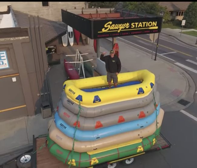 But what professional rafter Covey Baack did during a recent rafting excursion in Gold Hills, Oregon makes even the most intense rafter stunts look like nothing. Baack stepped forward and stacked six rafts on top of each other. He looked like he was just doing that to move them, but then he walked over to the water.