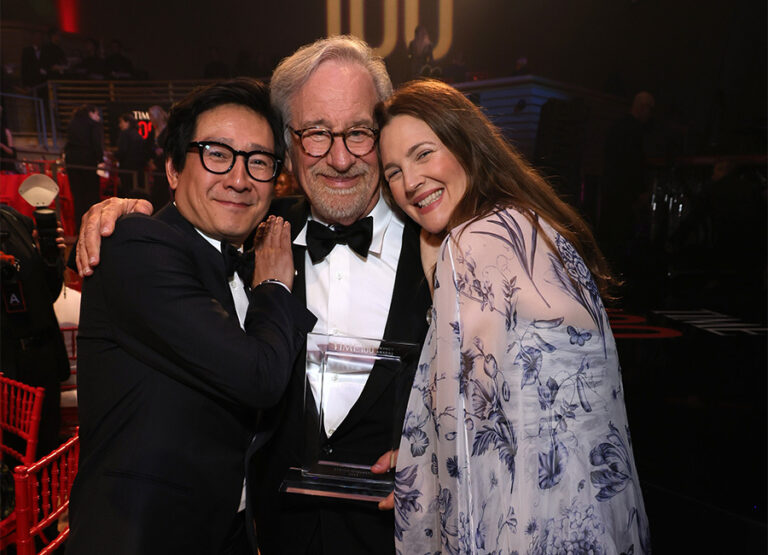 During the gala, Quan thanked Spielberg for helping him discover his love for acting, saying “Steven introduced me to this world where his imagination lived and invited me in. He showed me how much fun we can have when we let creativity be our guide.” Barrymore also spoke about the impact Spielberg had on her life, saying “Every person on the planet has a story, and Steven has made us all feel so connected, not only in the movie theaters but in life itself.”