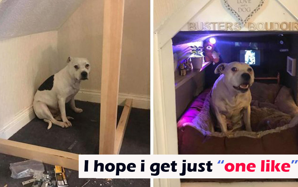 To pay tribute to Buster’s beloved brother Zook, the builder added lights, adorable decorations, toys, a small TV for hanging out, a comfy bed and, of course, pictures of Zook.