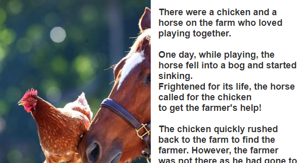 This incident solidified the friendship between the chicken and the horse, solidifying their companionship.