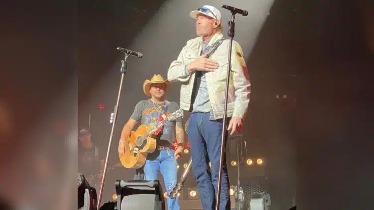 A remarkable moment unfolded at Oklahoma City’s Paycom Center on Friday night when Jason Aldean extended a warm invitation to fellow Oklahoma native Toby Keith to join him on stage. Keith, an acclaimed country artist, took the stage alongside Jason Aldean and treated the ecstatic crowd to his 1993 hit, “Should’ve Been A Cowboy.”