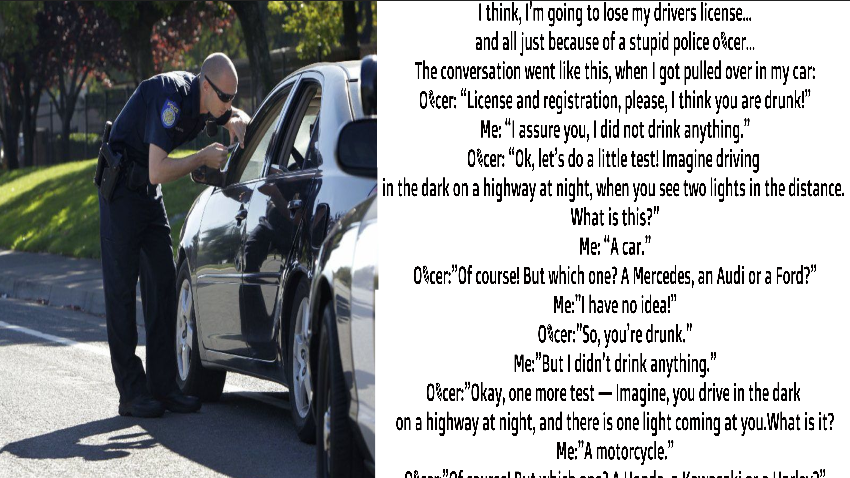 I’m concerned that I might end up losing my driver’s license, all due to an encounter with a rather unreasonable police officer. This is how the interaction unfolded when I was pulled over while driving: