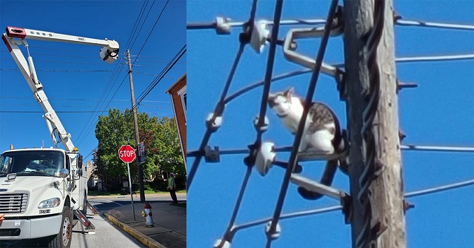 Utility company shuts off power to rescue cat trapped on top of telephone pole